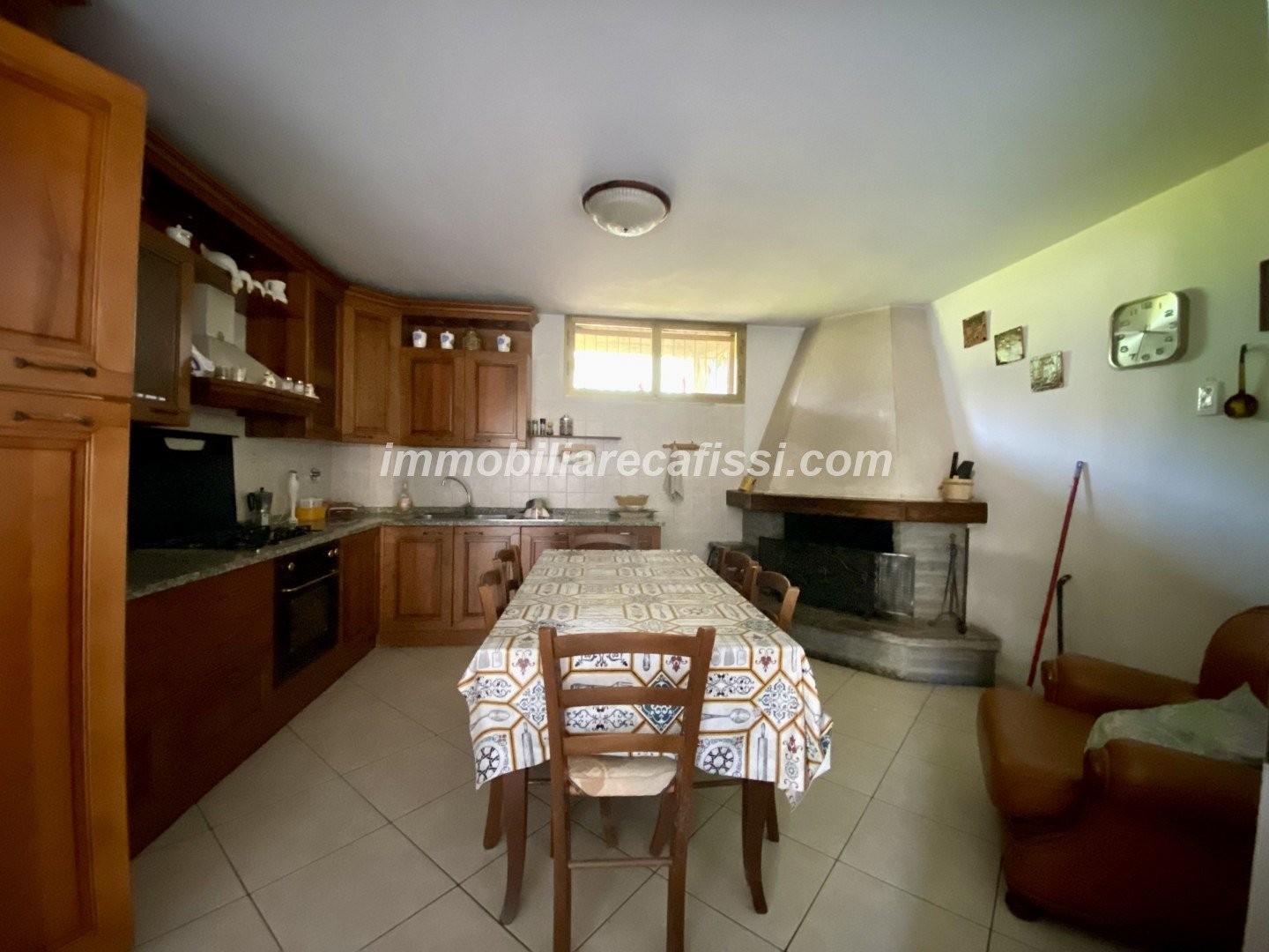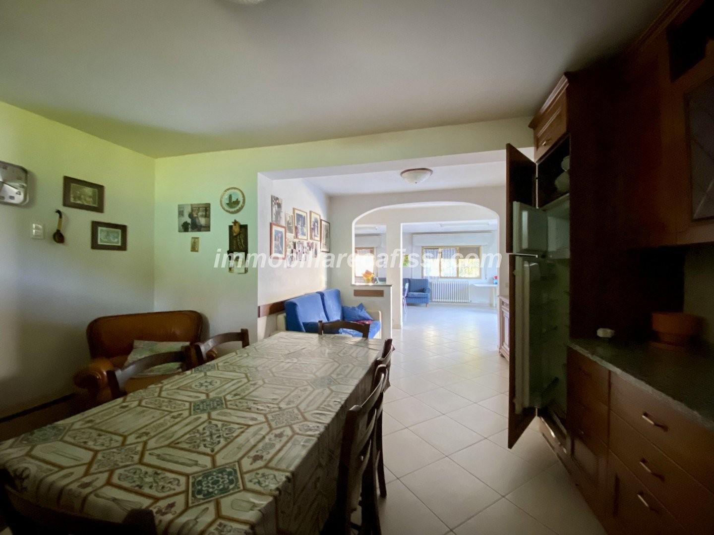 L' immobile è composto al piano terra da ampio ingresso, sala, sala pranzo con cucinotto, ripostiglio, disimpegno notte con due camere matrimoniali, camera media, servizio, terrazzi, oltre piano in parte seminterrato con ampia taverna con camino, servizio, cantina e garage.