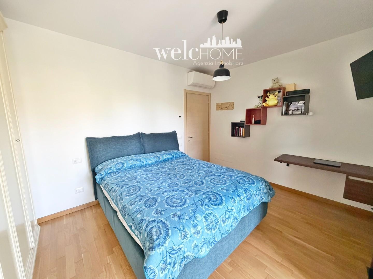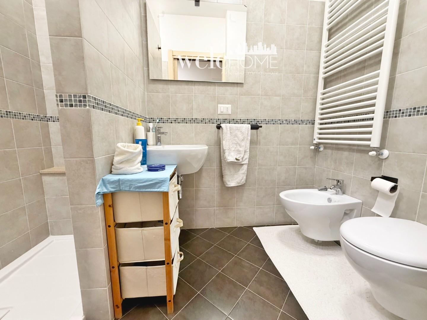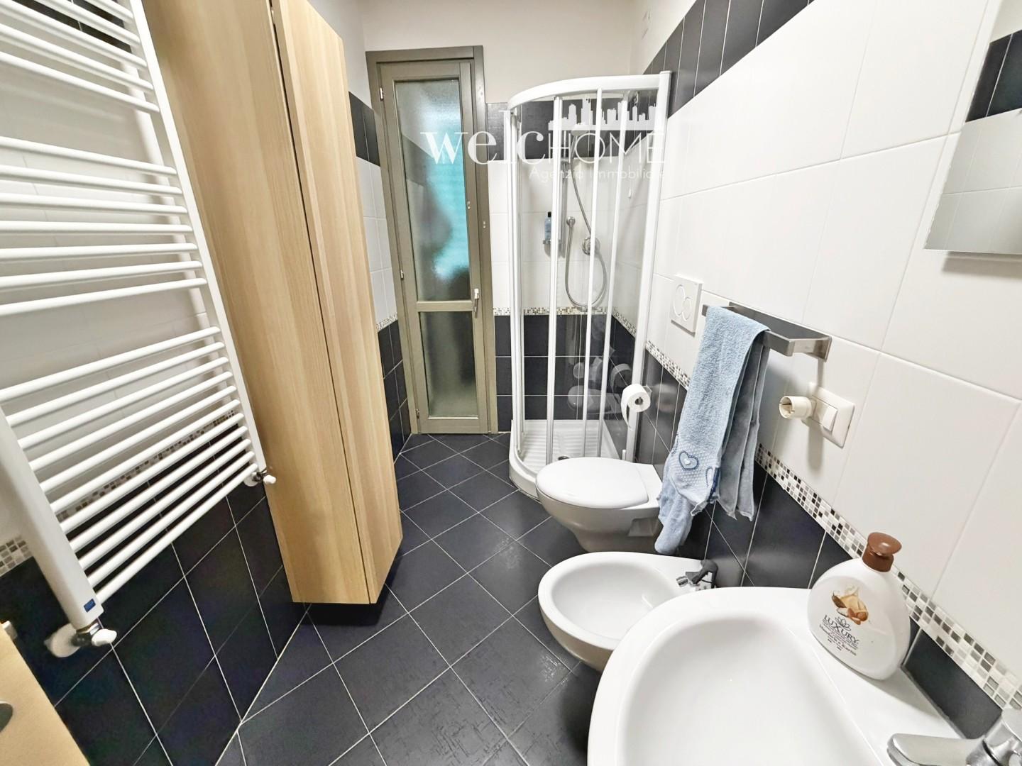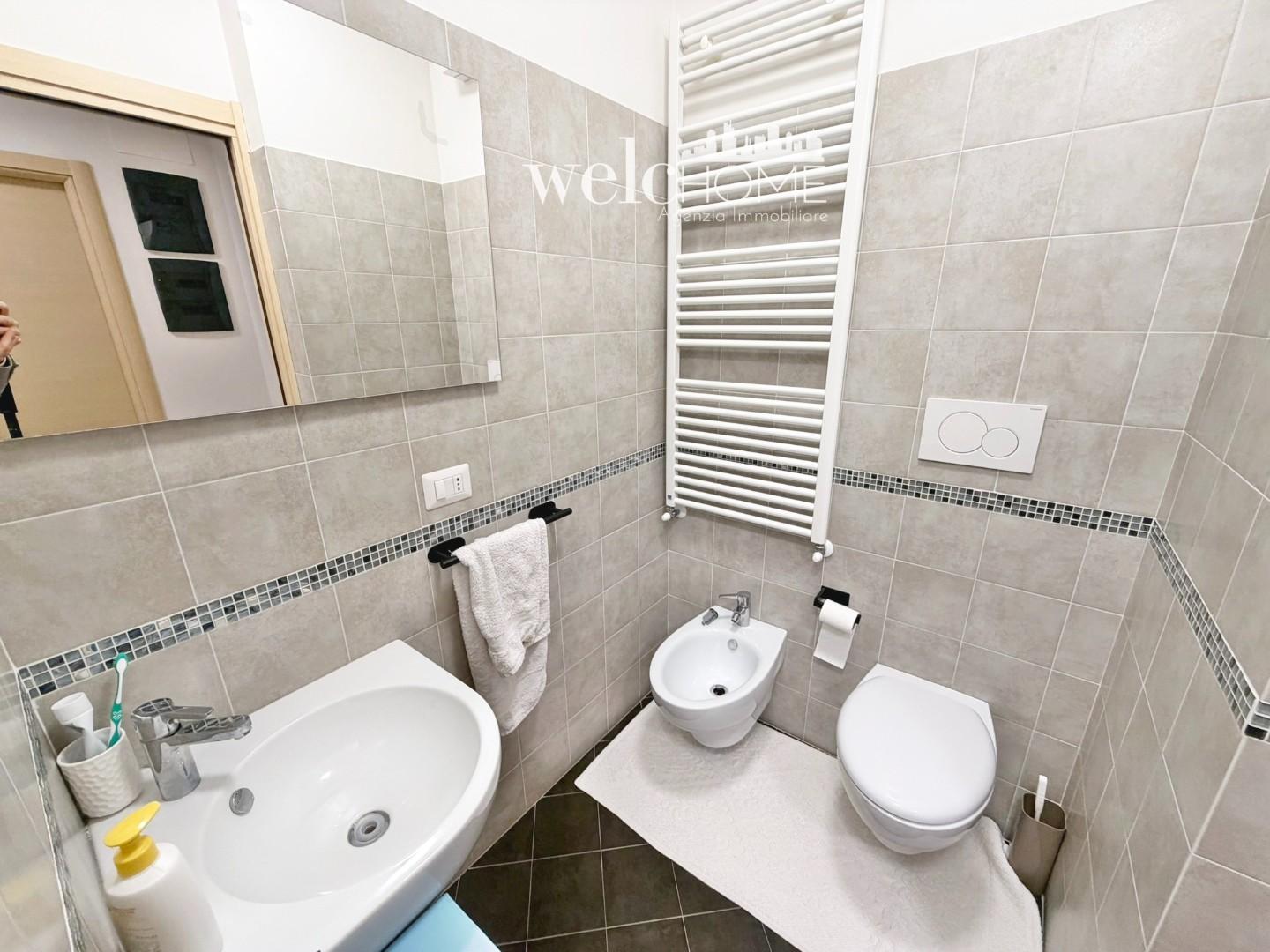 Un pratico disimpegno conduce alla zona notte, composta da una camera matrimoniale e una camera singola, entrambe con accesso al secondo terrazzo. Completano l’abitazione due servizi, di cui uno finestrato.