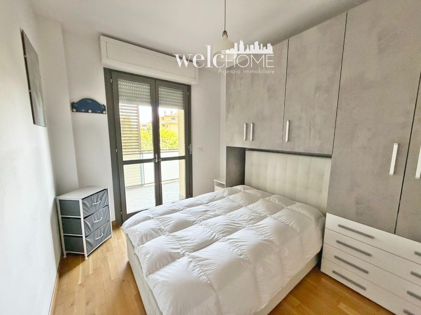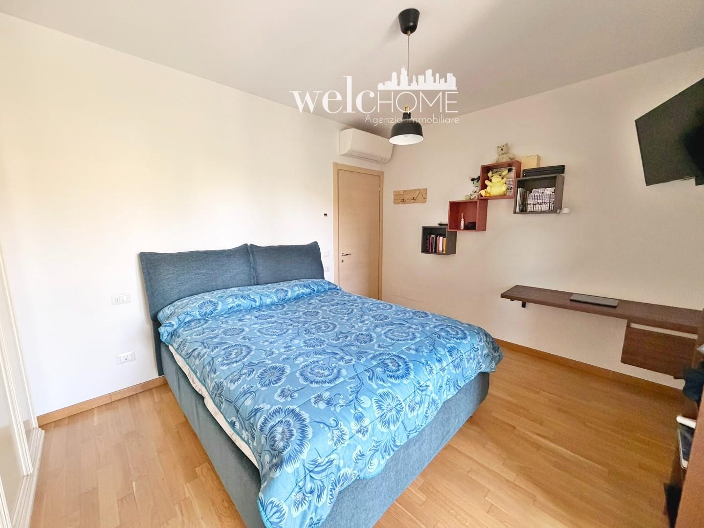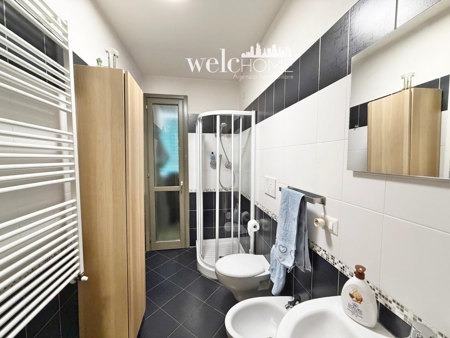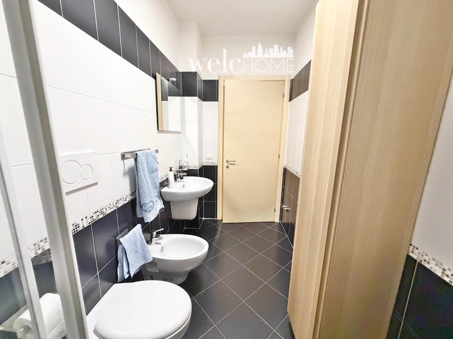 Un pratico disimpegno conduce alla zona notte, composta da una camera matrimoniale e una camera singola, entrambe con accesso al secondo terrazzo. Completano l’abitazione due servizi, di cui uno finestrato.